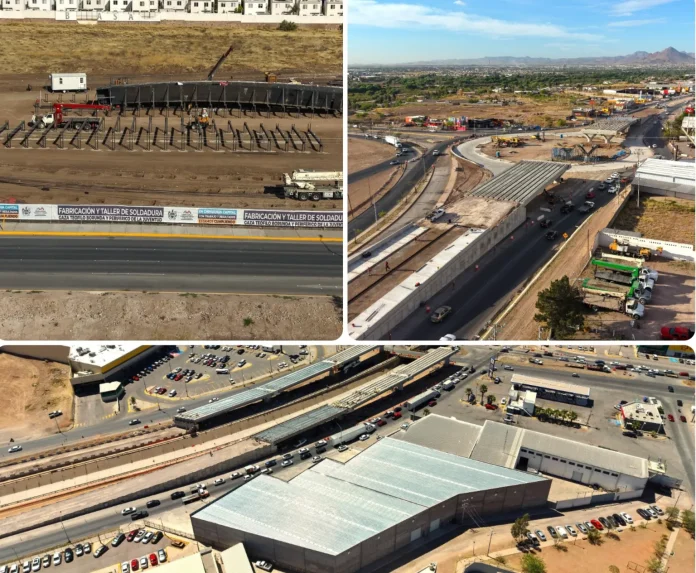 La Dirección de Obras Públicas, encabezada por el director Carlos Rivas, detalló que dos de los proyectos presentan un progreso superior al 50 por ciento. Se trata de los pasos superiores ubicados en el cruce de la carretera Chihuahua-Aldama con avenida Fuerza Aérea, así como en la intersección de la vialidad Los Nogales con avenida de las Industrias, donde actualmente se desarrollan trabajos estructurales como colocación de trabes, colado de losas y construcción de rampas de acceso.